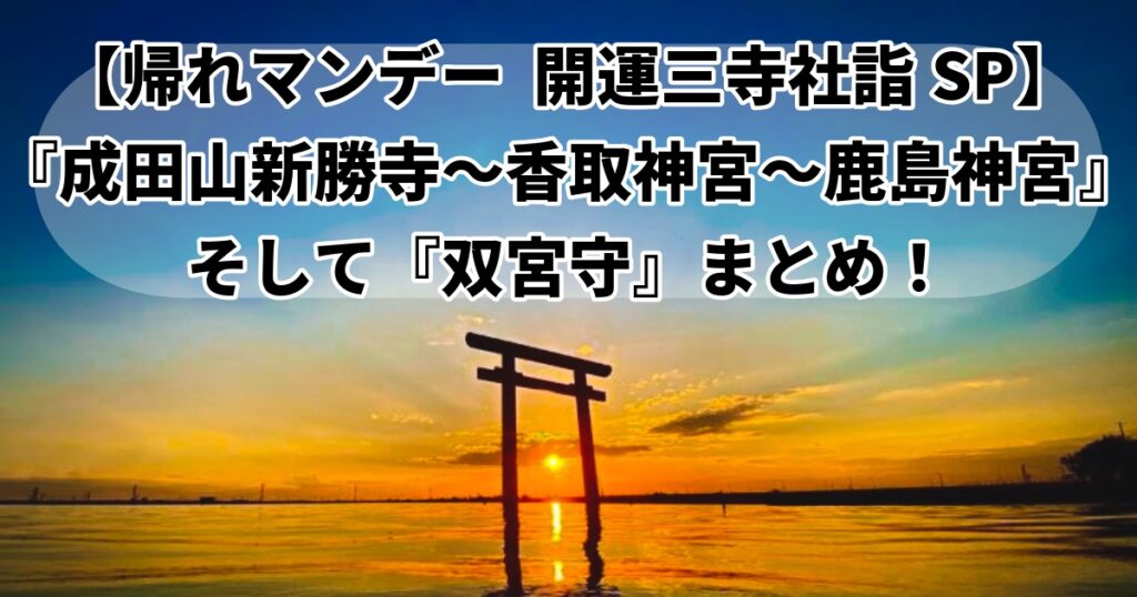 【最新情報】2026年1月19日放送の『帰れマンデー見っけ隊!!』で紹介された、成田山新勝寺・香取神宮・鹿島神宮の開運ルートと「双宮守」をまとめています!「12年に一度だけ」この言葉に弱いのはことばとだけでしょうか。オリンピックですら4年なのに、... -