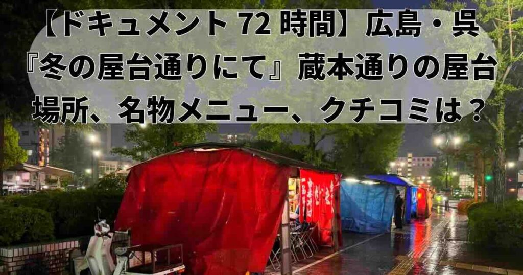 ドキュメント72時間|広島・呉『屋台通り』ってどこ?場所、メニュー、評判は?