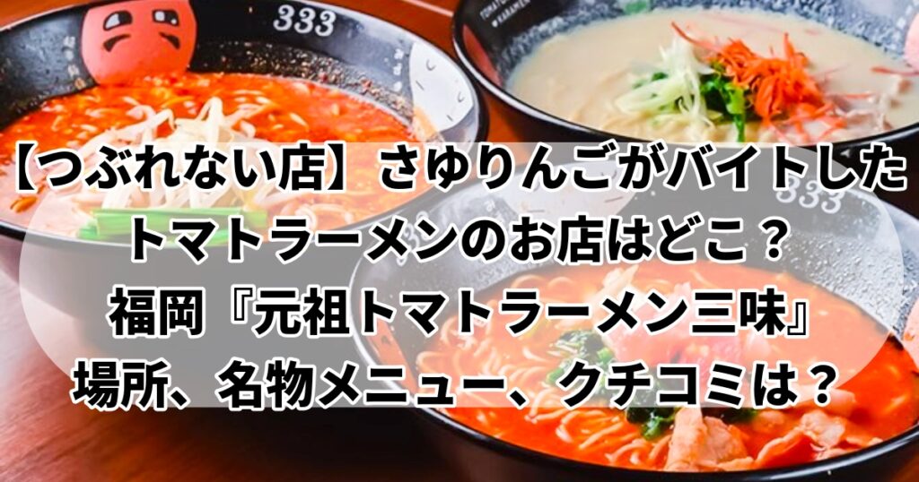 2025年11月2日夜7時に放送された『坂上&指原のつぶれない店』でさゆりんごさんがアルバイト&潜入取材密着したのは、豚骨王国・福岡で「トマトラーメン」という変化球で勝負を挑む「元祖トマトラーメン三味333」。24時間営業、トマトスープの鮮やかな... -