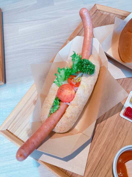 もう一つが那須豚ドッグ(880円)。全粒粉のバンズにはさまれた長いソーセージは、甘味を感じられる那須豚を使用。見た目のインパクトだけじゃなく、パリッとした食感で濃厚な風味。特製のサルサソースでどうぞ。