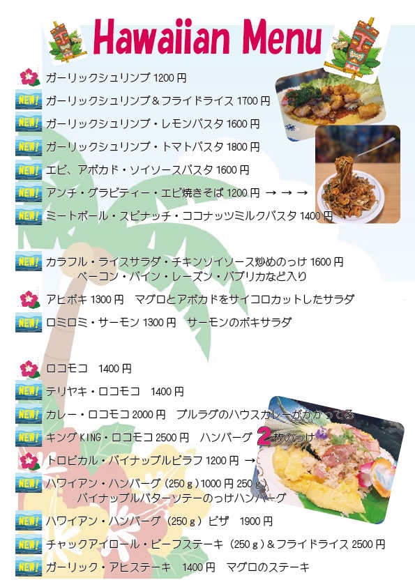 沖縄料理やハワイアン、中華、和食、韓国料理などの多国籍料理