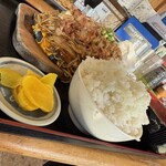 そしてなんと、この焼きそばにプラス100円で「白ごはん」と「味噌汁」が付いてくるのが、焼きそば定食(1100円)。焼きそばをおかずに米を食らう。これはもう、炭水化物によるドーピングです。口の中でソース味の麺と白米が出会った瞬間、脳内でファンファーレが鳴り響くのが聞こえます。