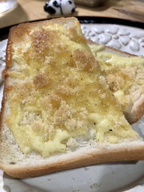 まずは、トーストにチーズと三温糖を焼いて溶かし、さらに蜂蜜を加えた「悪魔のトースト(250円)」。カロリーと美味さの葛藤で罪悪感増し増しのまさに「悪魔」の味。