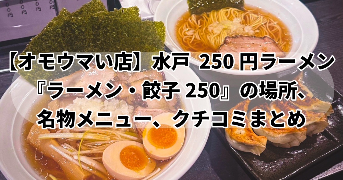 気になりますよね、水戸『ラーメン・餃子250』。お店はどこにあるんでしょう?味は?メニューは?さぁ、あなたの好奇心を満たしますよー!