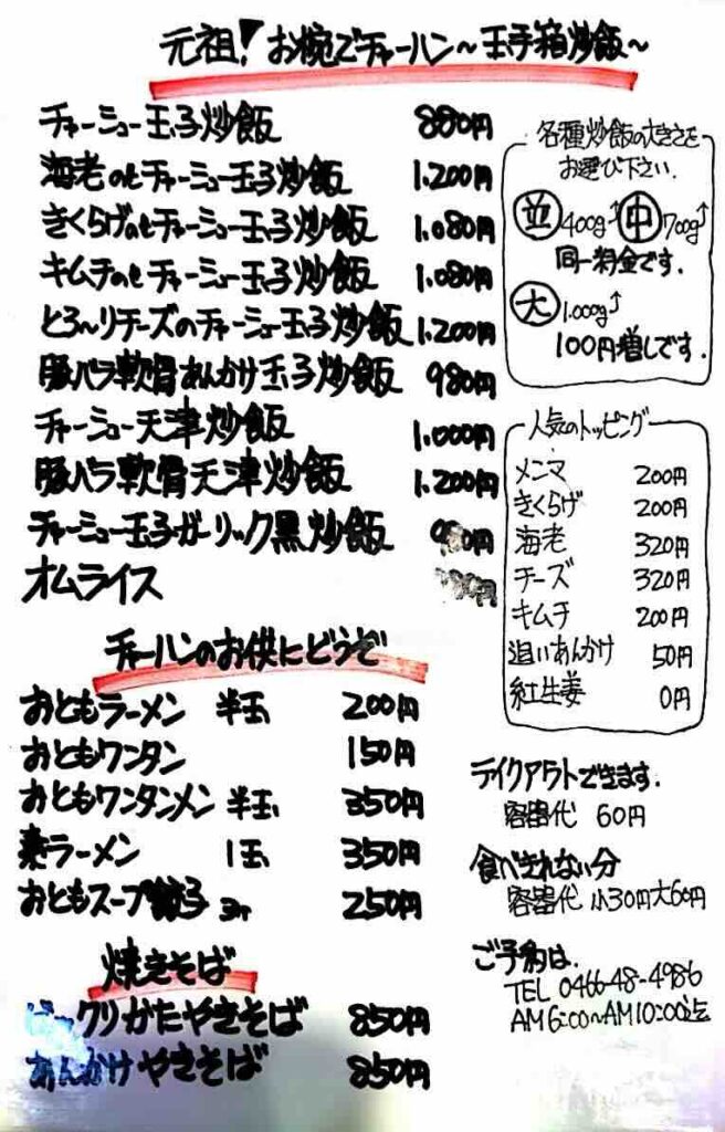 - 玉手箱チャーハンは逆さお椀を自分で開封する演出つき。 サイズは並(小)約400g・中盛り約700g・大盛り約1kg、初見は中盛り以下がおすすめです。