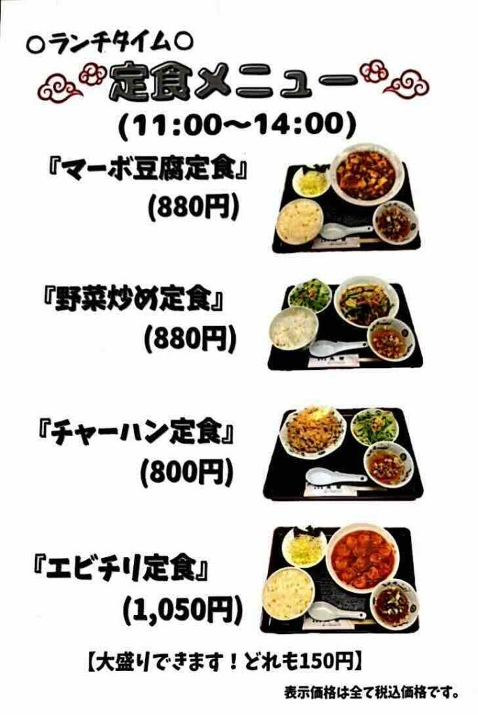 また、定食メニューも充実しています。