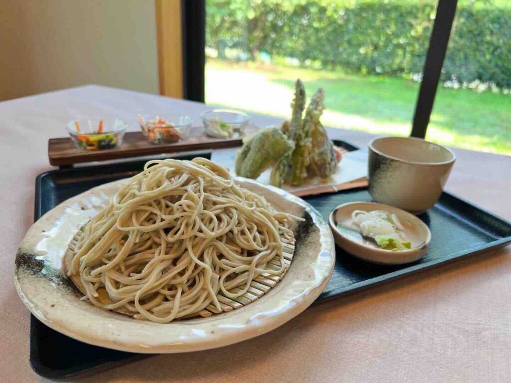 地元産そば粉を使った香り豊かな蕎麦に、高根沢町で採れたての野菜をサクサクの天ぷらにして盛り付けた「野菜天盛蕎麦」。これぞ地産地消の極み! 蕎麦の風味と新鮮野菜の甘みが絶妙に調和する一品は、まさに「ここでしか食べられない」特別感があります。