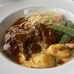 | ビーフシチューセット | 2,300円 | 【1日10食限定】2週間煮込んだデミグラスの深いコク。お肉が口の中でホロホロに解けます。(ご飯とスープ付き。ご飯は1回おかわり可!) |